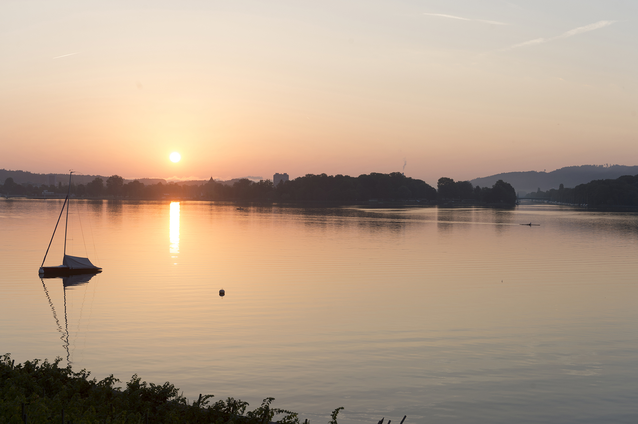 Nidau und Kanal, morgens vom See her
